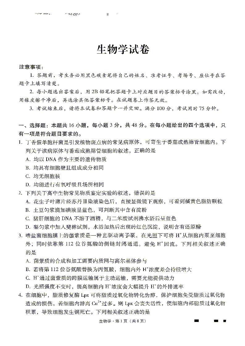 贵州省六校联盟4月高考实用性联考卷(三)生物.pdf