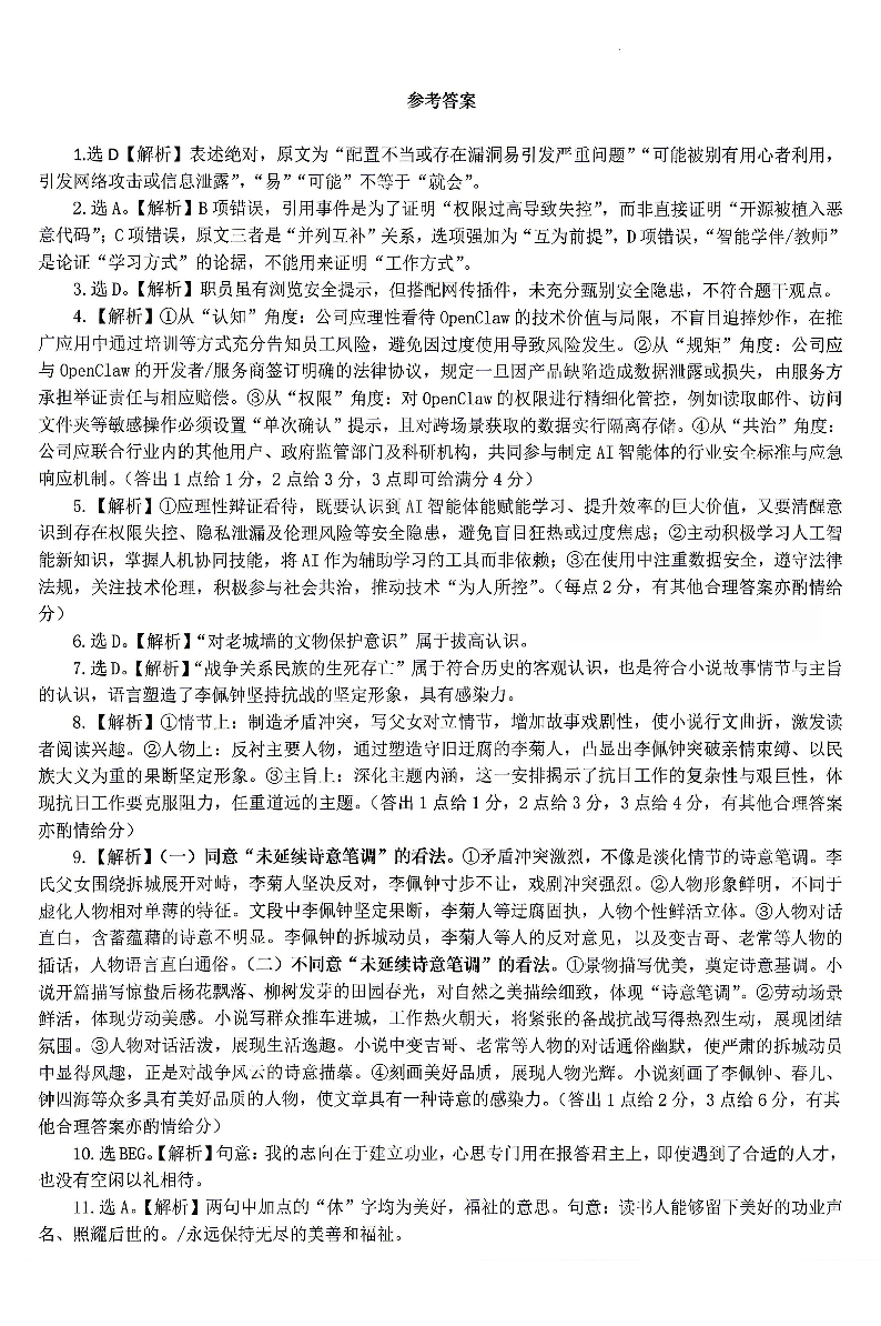 湖南省岳阳市2026届高三教学质量监测(二)语文答案.pdf
