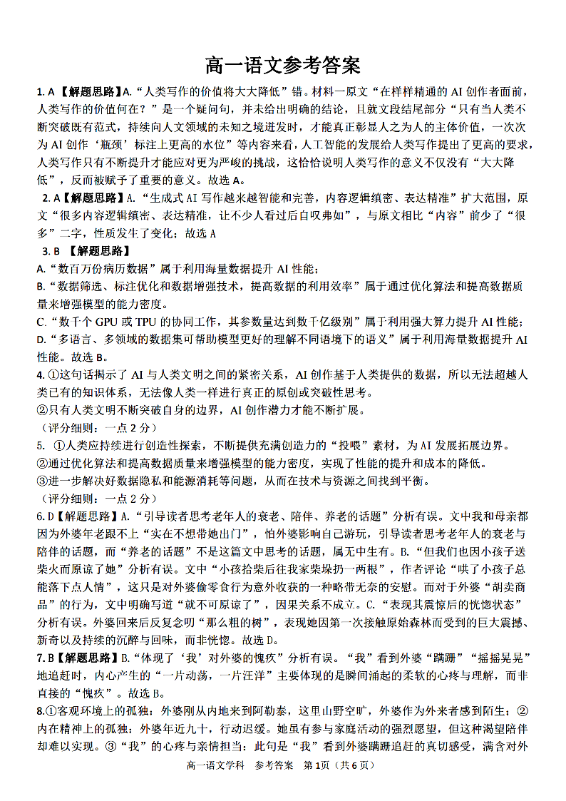 衢州五校联盟2025学年高一第二学期期中联考 语文答案.pdf
