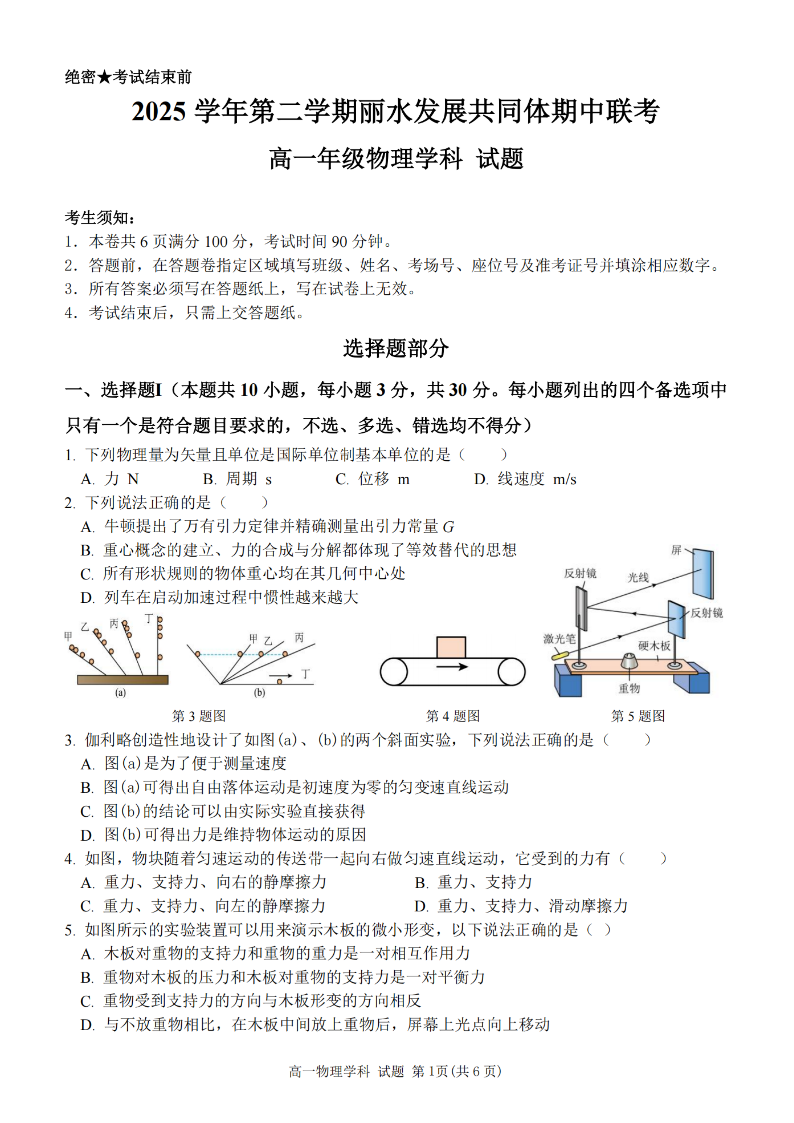 丽水发展共同体2025学年高一第二学期期中联考 物理.pdf