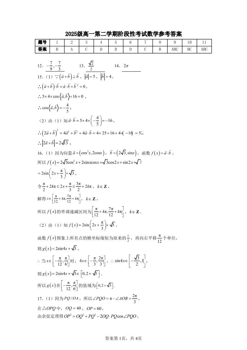 广东省汕头市金山中学2025-2026学年高一下学期阶段性考试 数学答案.pdf