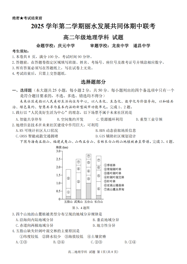 丽水发展共同体2025学年高二第二学期期中联考 地理.pdf