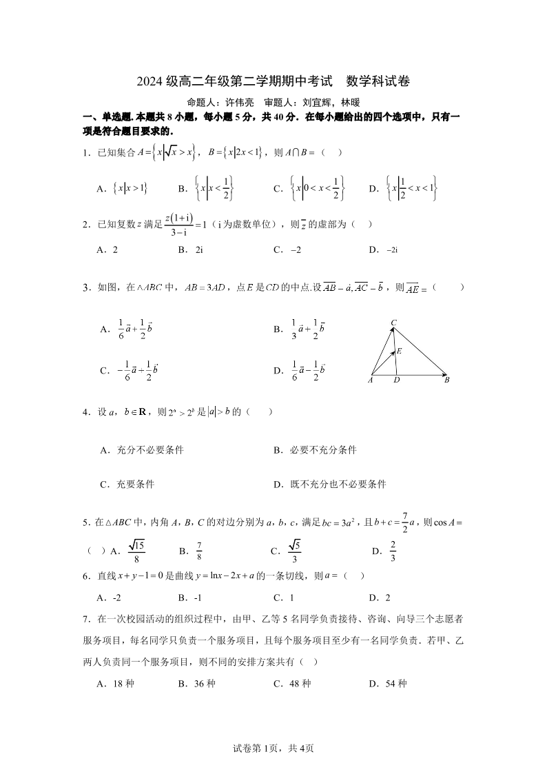 广东省汕头市金山中学2025-2026学年高二下学期期中考试 数学.pdf