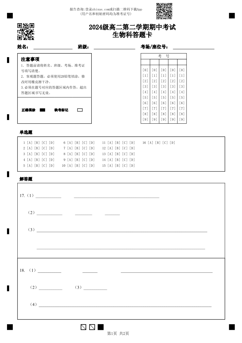 广东省汕头市金山中学2025-2026学年高二下学期期中考试 生物答题卡.pdf