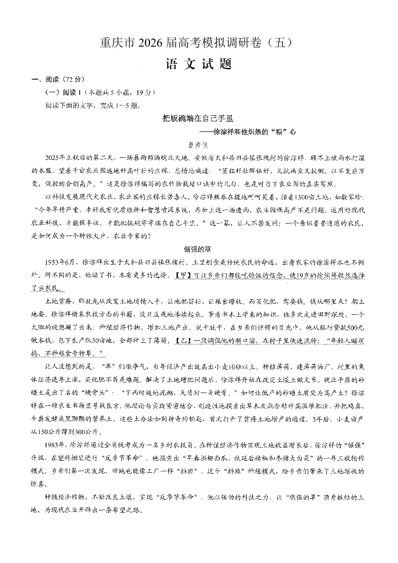 2026年普通高等学校招生全国统一考试康德调研(五)语文试题(含答案).pdf