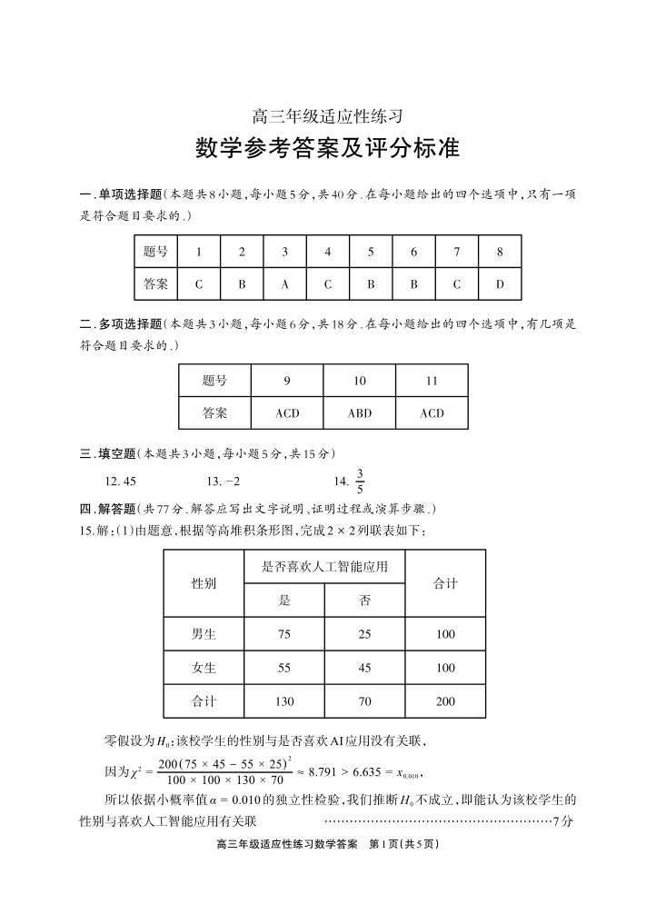 德阳市2026届高三年级适应性练习 数学答案.pdf