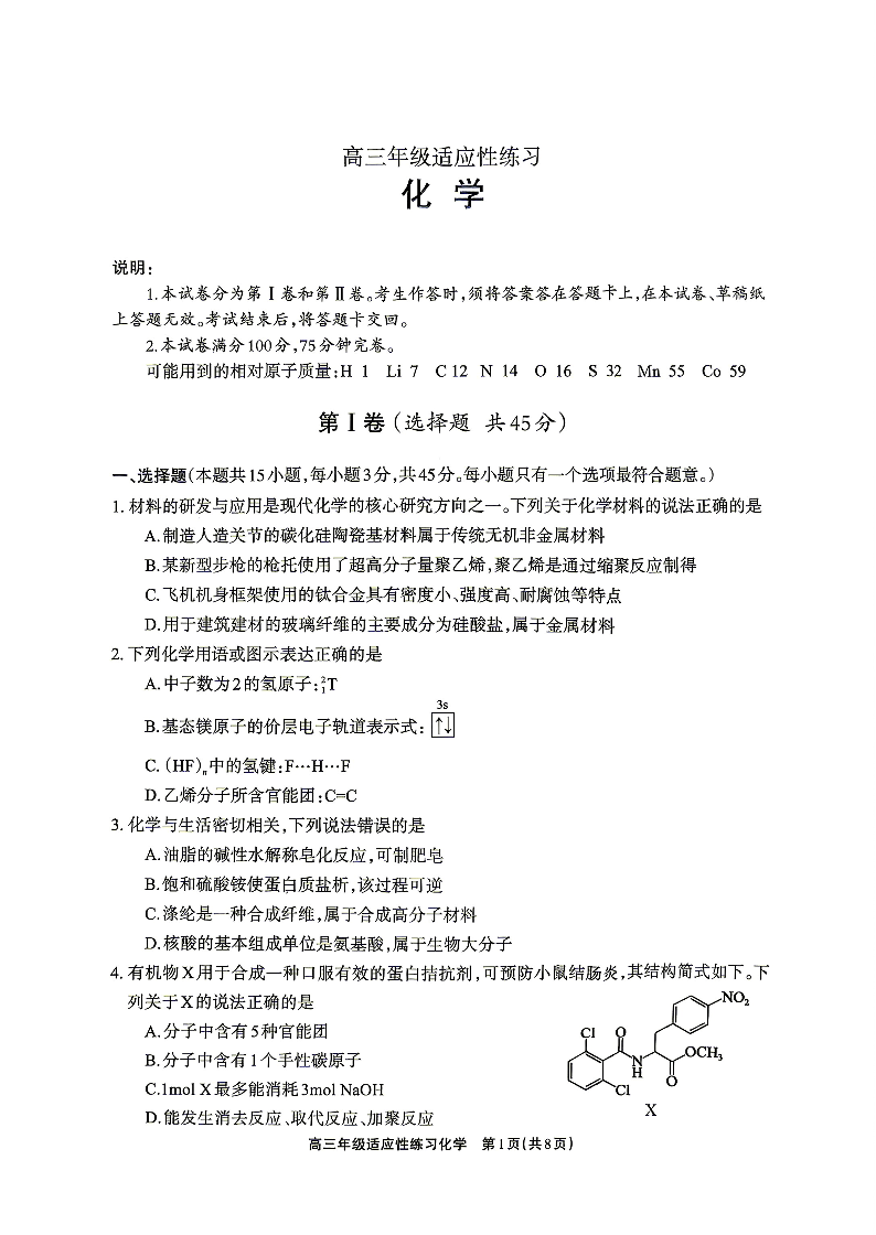 德阳市2026届高三年级适应性练习 化学.pdf