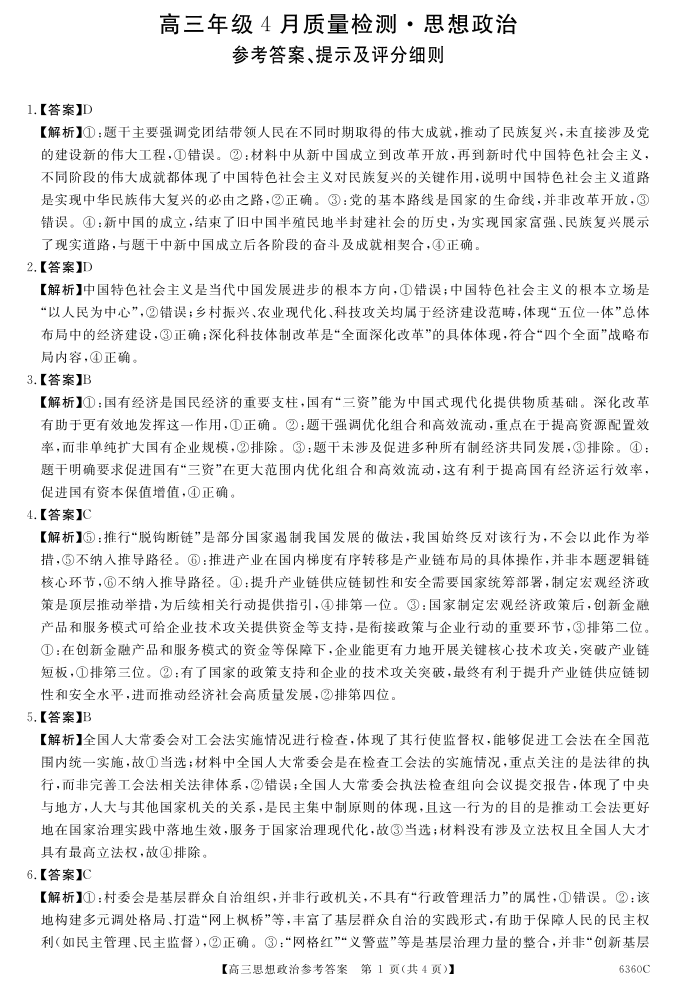 天壹名校联盟2026届高三年级4月质量检测 政治答案.pdf