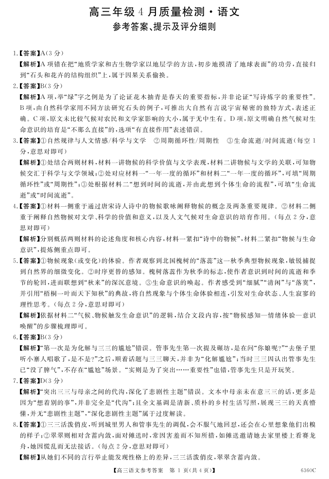 天壹名校联盟2026届高三年级4月质量检测 语文答案.pdf