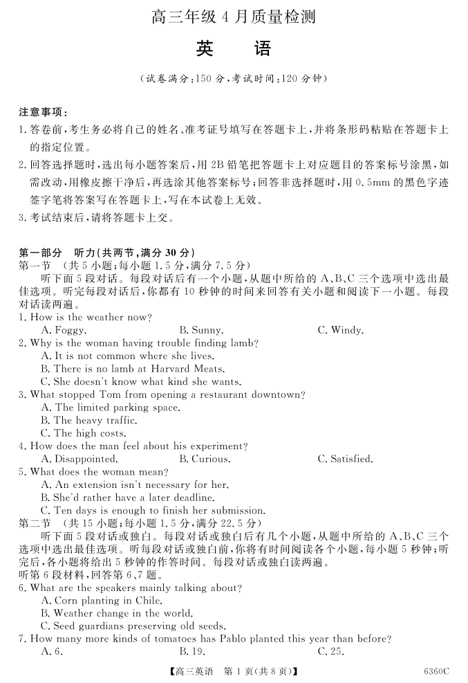 天壹名校联盟2026届高三年级4月质量检测 英语.pdf