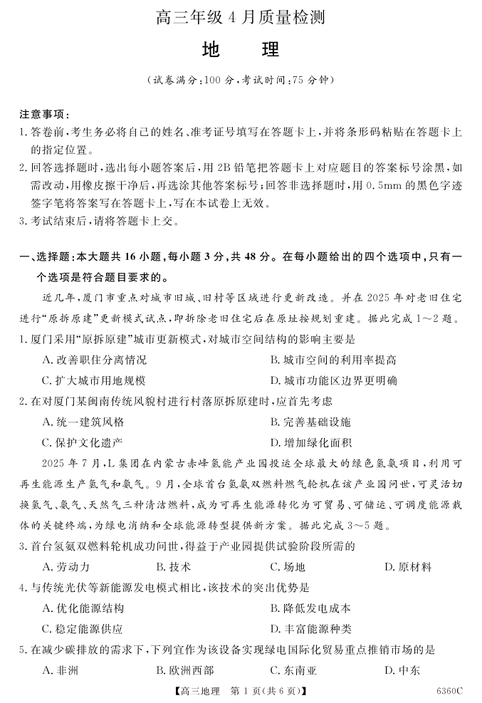 天壹名校联盟2026届高三年级4月质量检测 地理.pdf