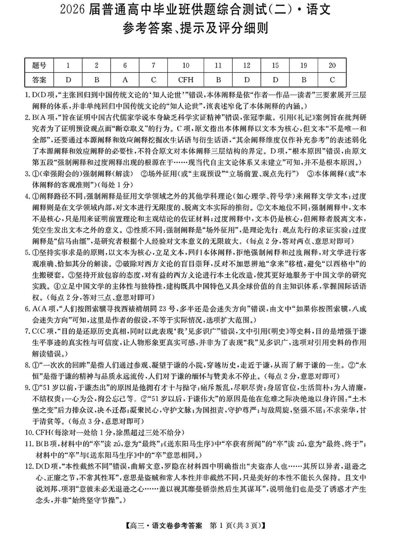 清远市2026届普通高中毕业班供题综合测试(二)语文答案.pdf