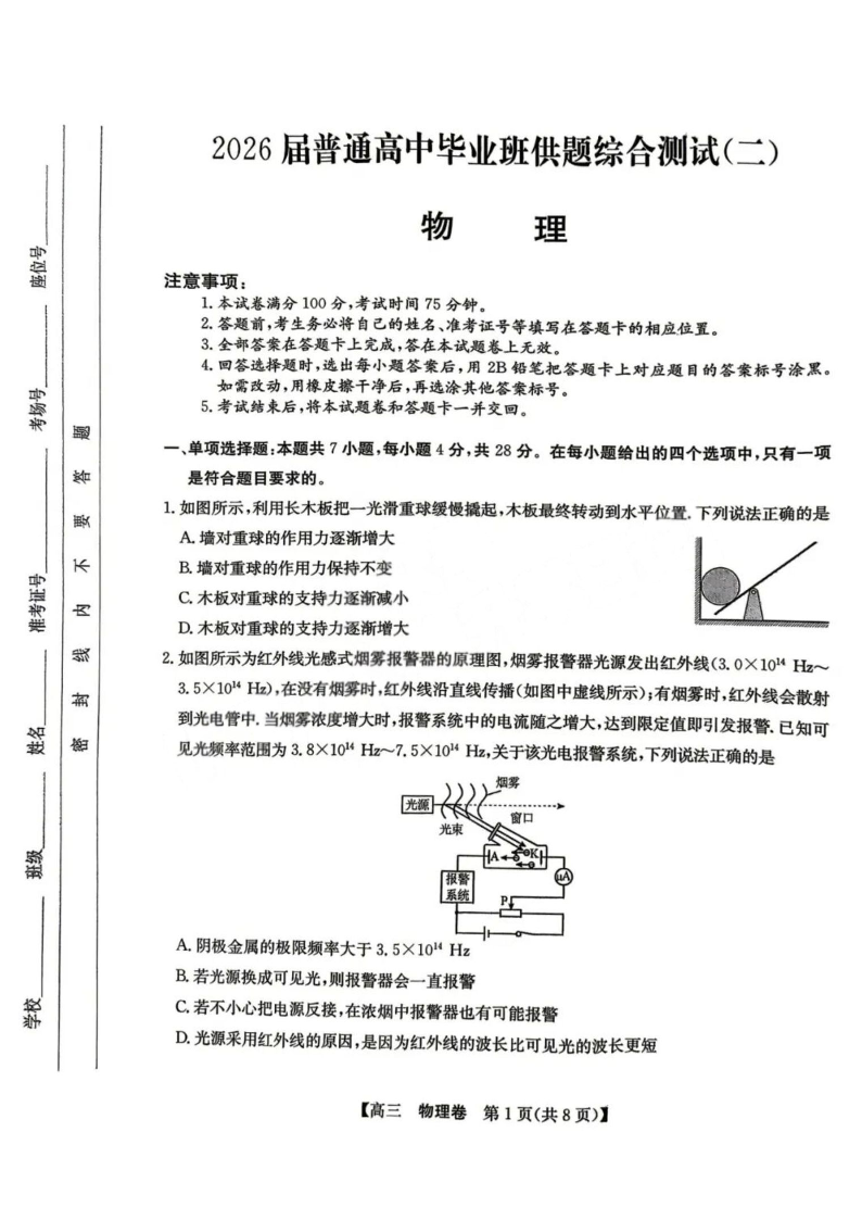 清远市2026届普通高中毕业班供题综合测试(二)物理.pdf