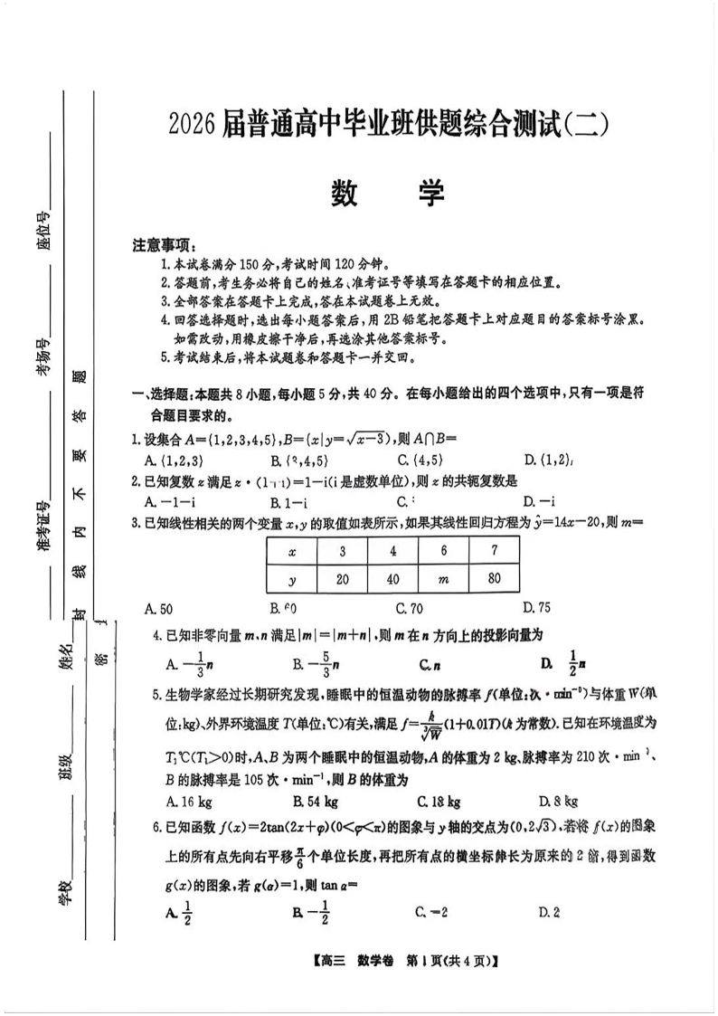清远市2026届普通高中毕业班供题综合测试(二)数学.pdf