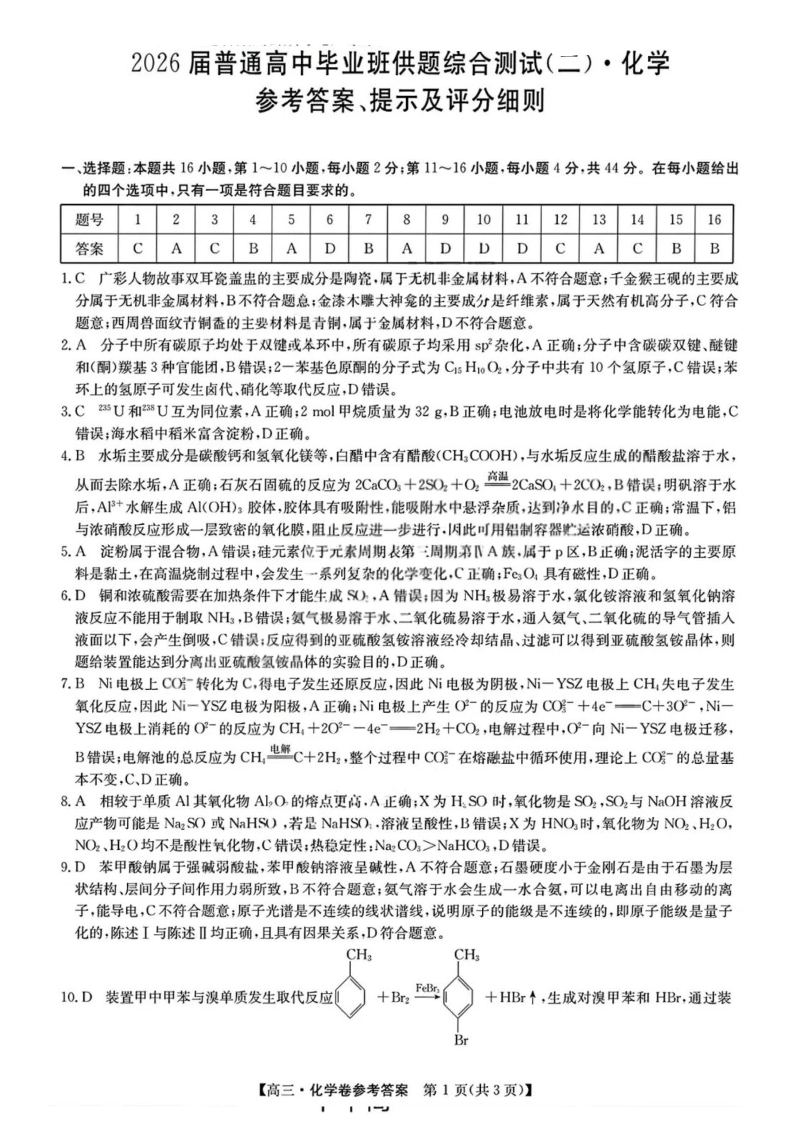 清远市2026届普通高中毕业班供题综合测试(二)化学答案.pdf
