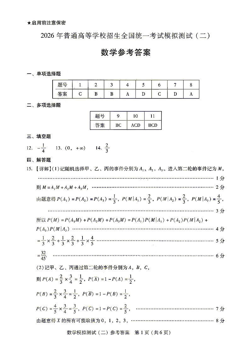 广东省2026年普通高等学校招生全国统一考试模拟测试(二)数学答案.pdf
