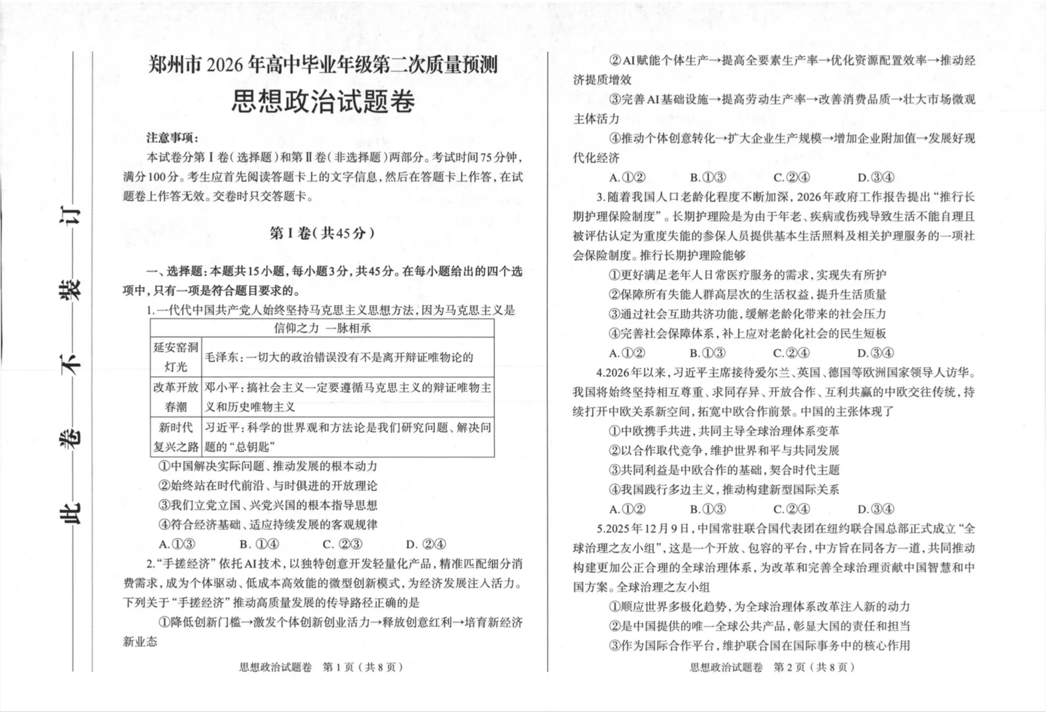 郑州市2026年高中毕业年级第二次质量预测 政治.pdf