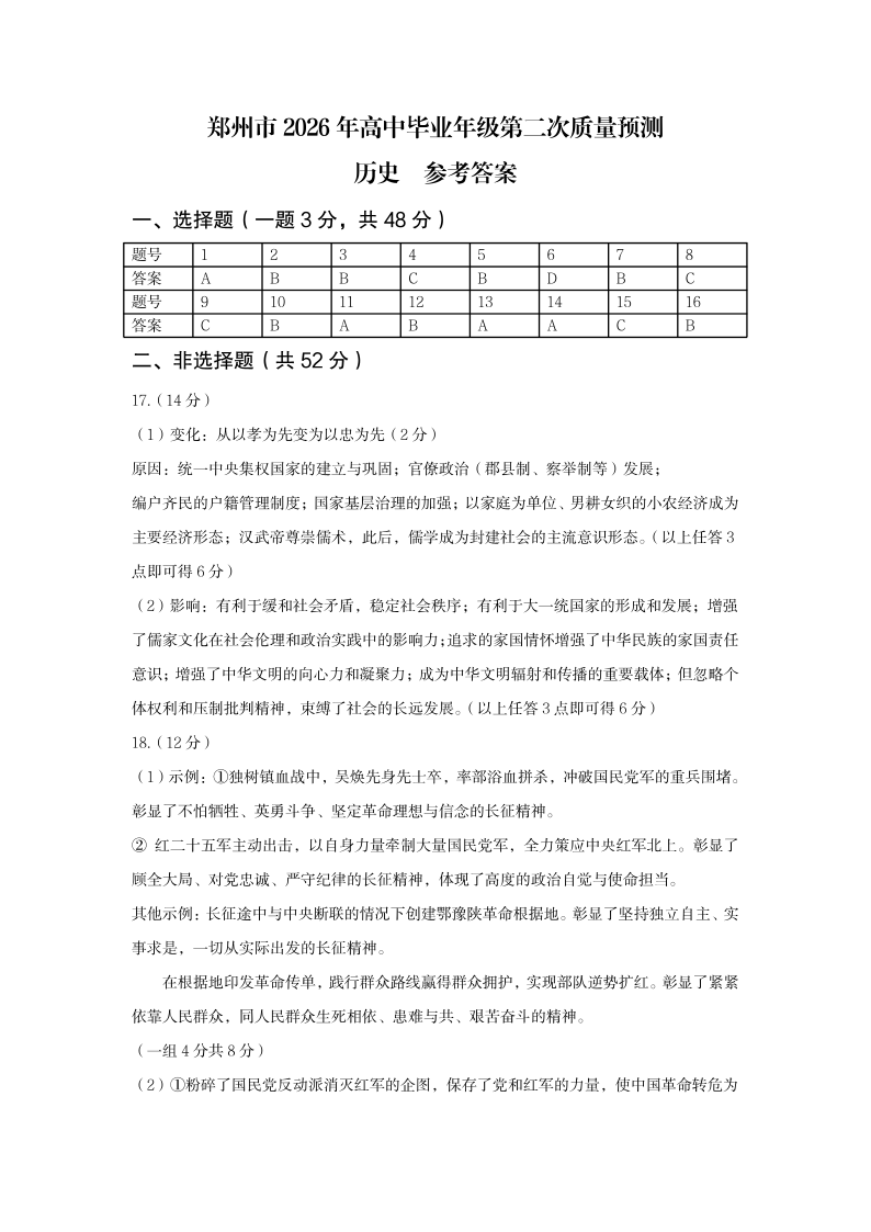 郑州市2026年高中毕业年级第二次质量预测 历史答案.pdf