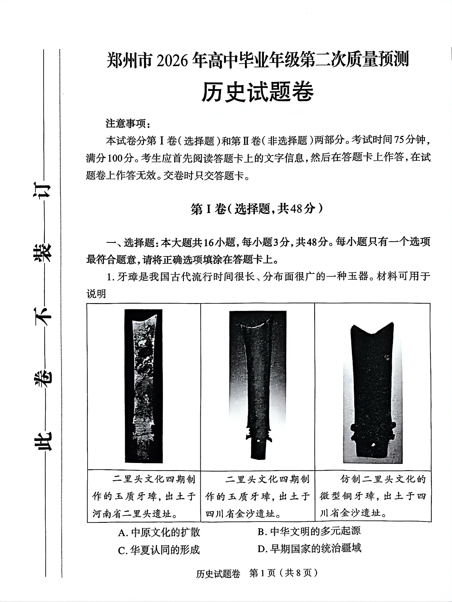 郑州市2026年高中毕业年级第二次质量预测 历史.pdf
