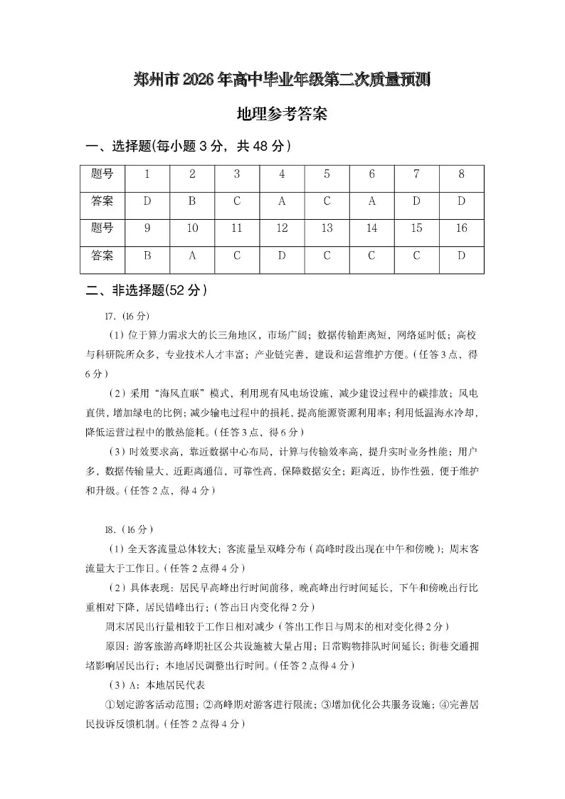 郑州市2026年高中毕业年级第二次质量预测 地理答案.pdf