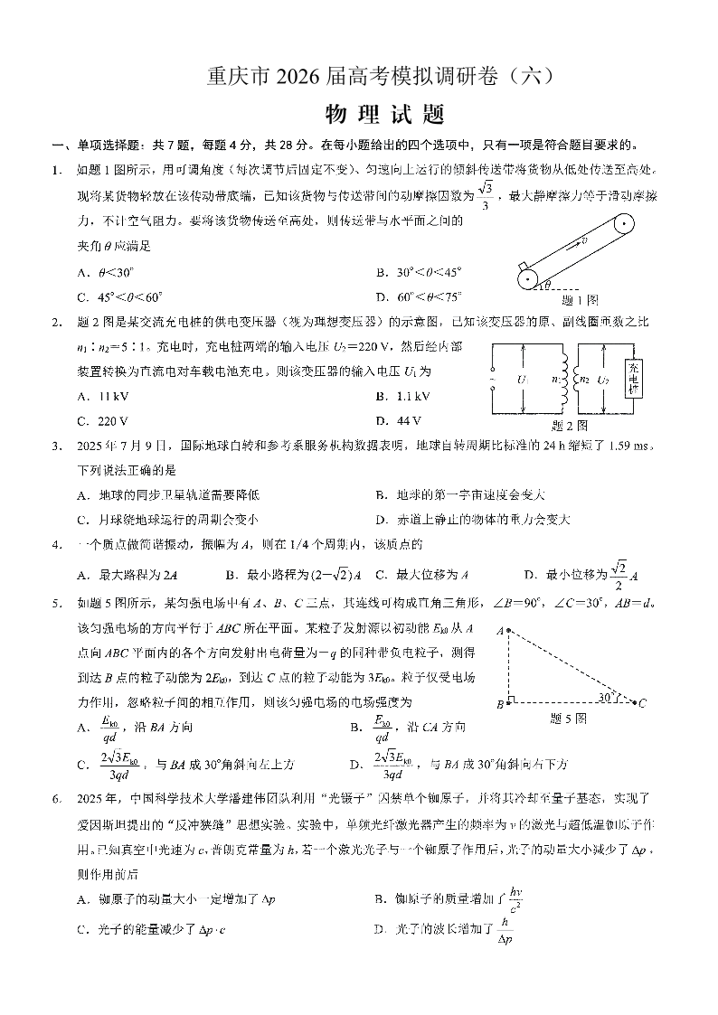 2026年普通高等学校招生全国统一考试康德调研(六)物理试题(含答案).pdf