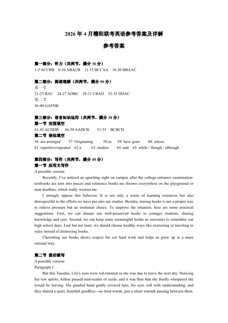 浙江省稽阳联谊学校2026年高三第二学期4月联考 英语答案.pdf