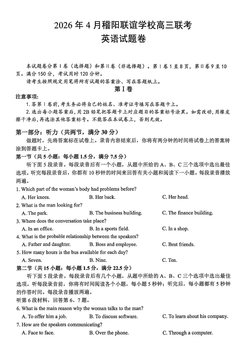 浙江省稽阳联谊学校2026年高三第二学期4月联考 英语.pdf