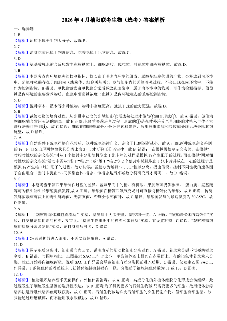 浙江省稽阳联谊学校2026年高三第二学期4月联考 生物答案.pdf