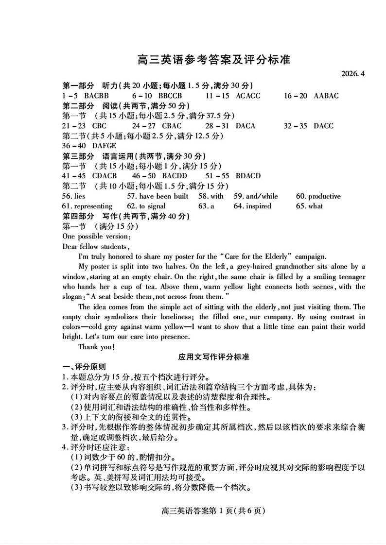 潍坊巿2026年4月高考模拟考试 英语答案.pdf