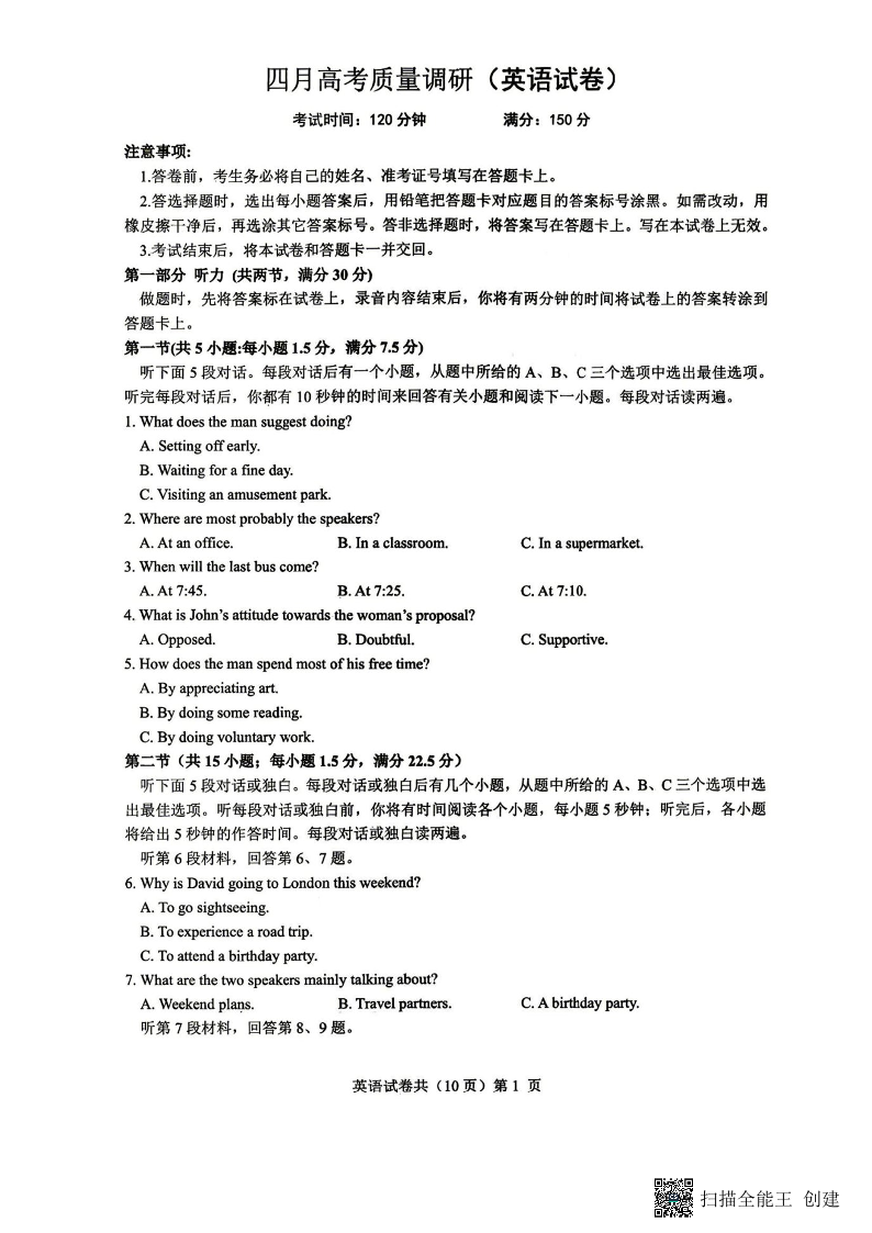 辽宁省协作校2026届高三四月高考质量调研 英语.pdf