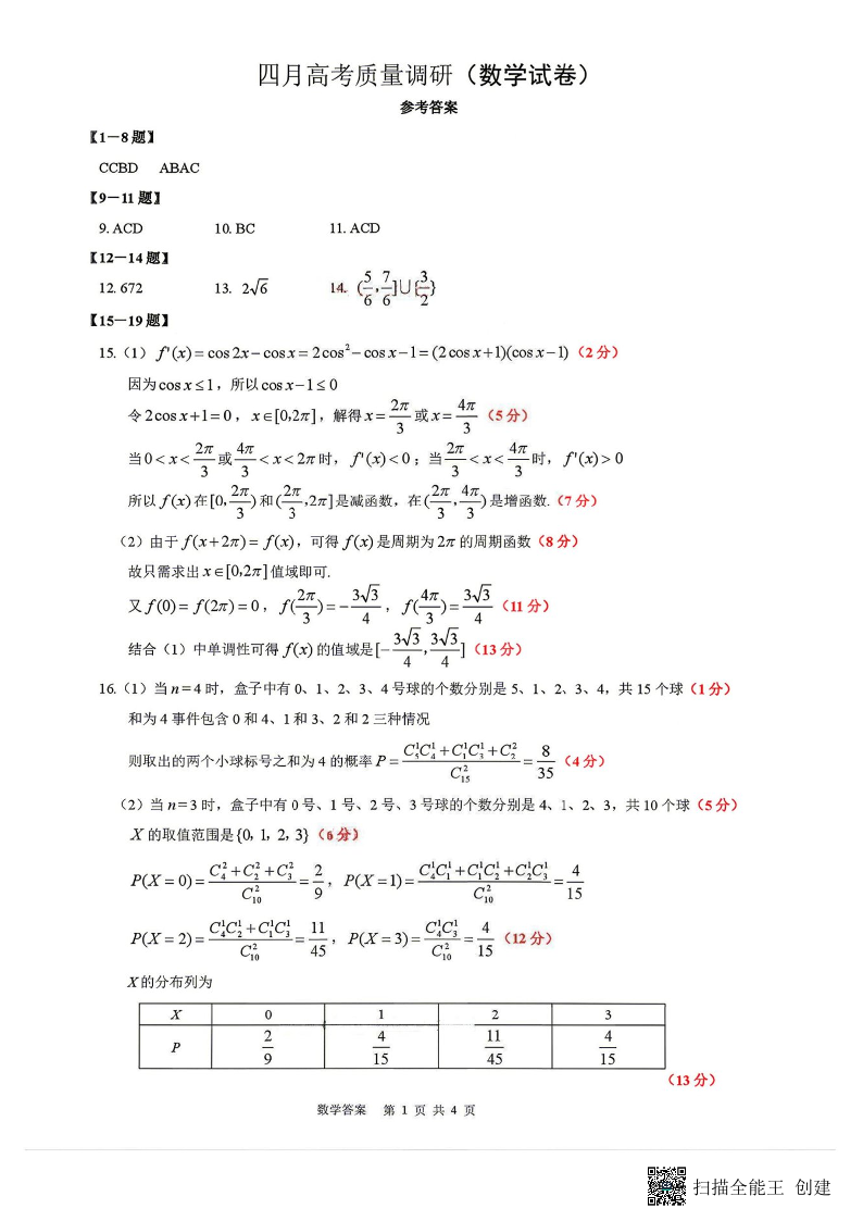 辽宁省协作校2026届高三四月高考质量调研 数学答案.pdf