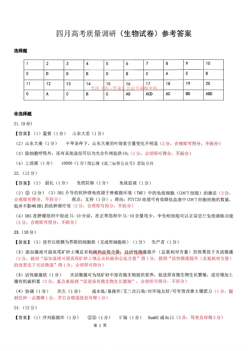 辽宁省协作校2026届高三四月高考质量调研 生物答案.pdf