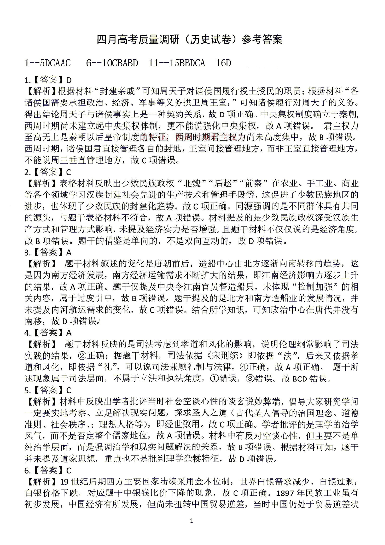辽宁省协作校2026届高三四月高考质量调研 历史答案.pdf