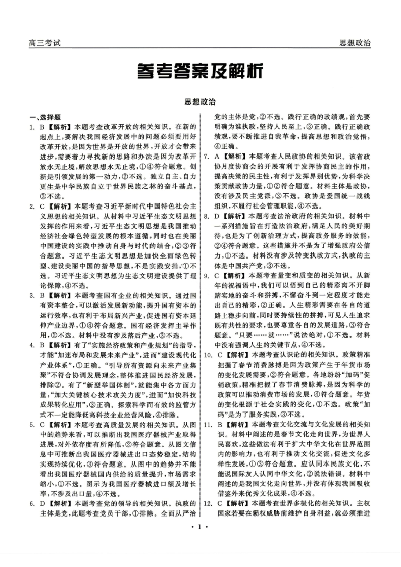 黑龙江省齐齐哈尔市2026届高三年级第二次联考 政治答案.pdf