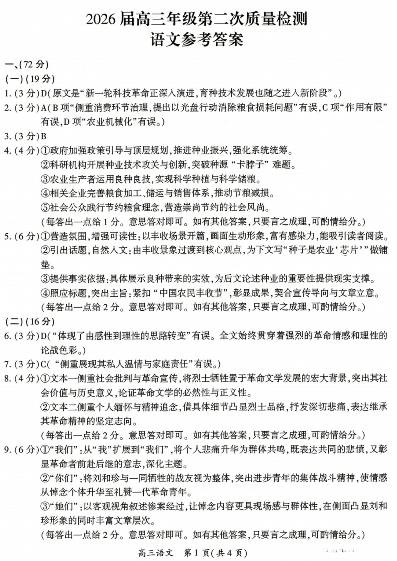 开封市2026届高三年级第二次质量检测 语文答案.pdf
