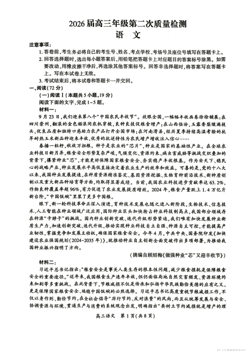 开封市2026届高三年级第二次质量检测 语文.pdf
