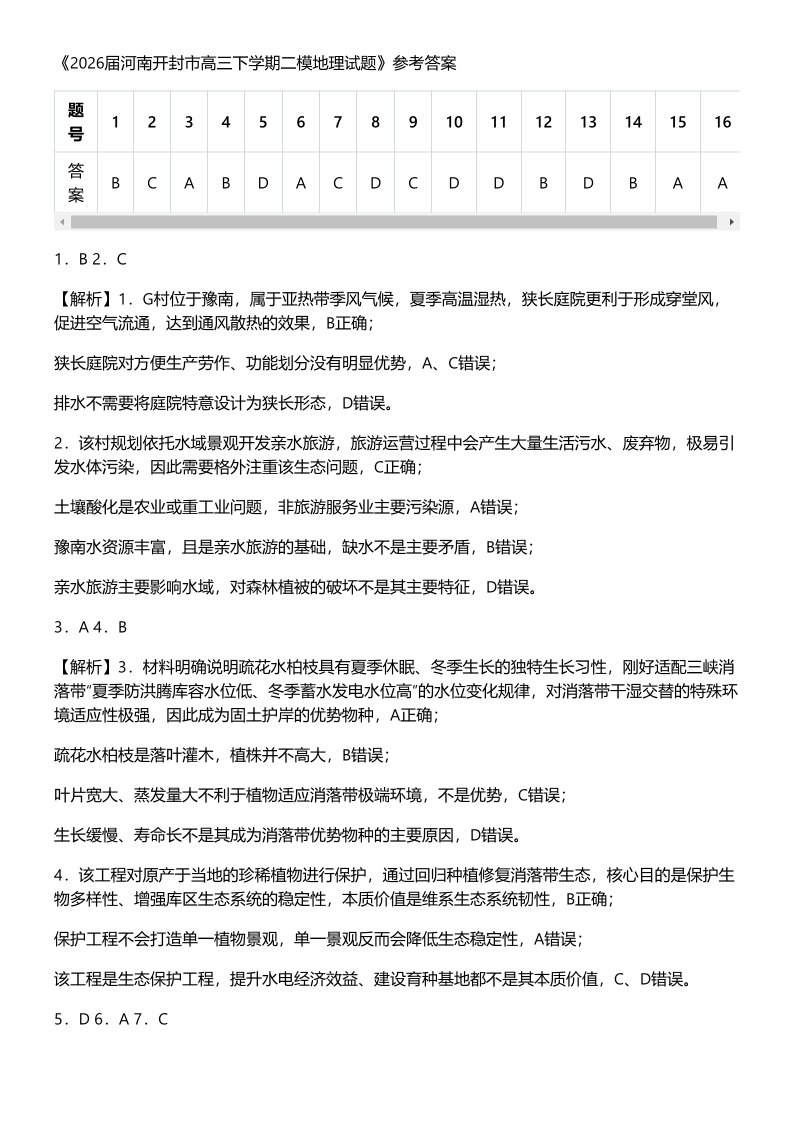 开封市2026届高三年级第二次质量检测 地理答案.pdf
