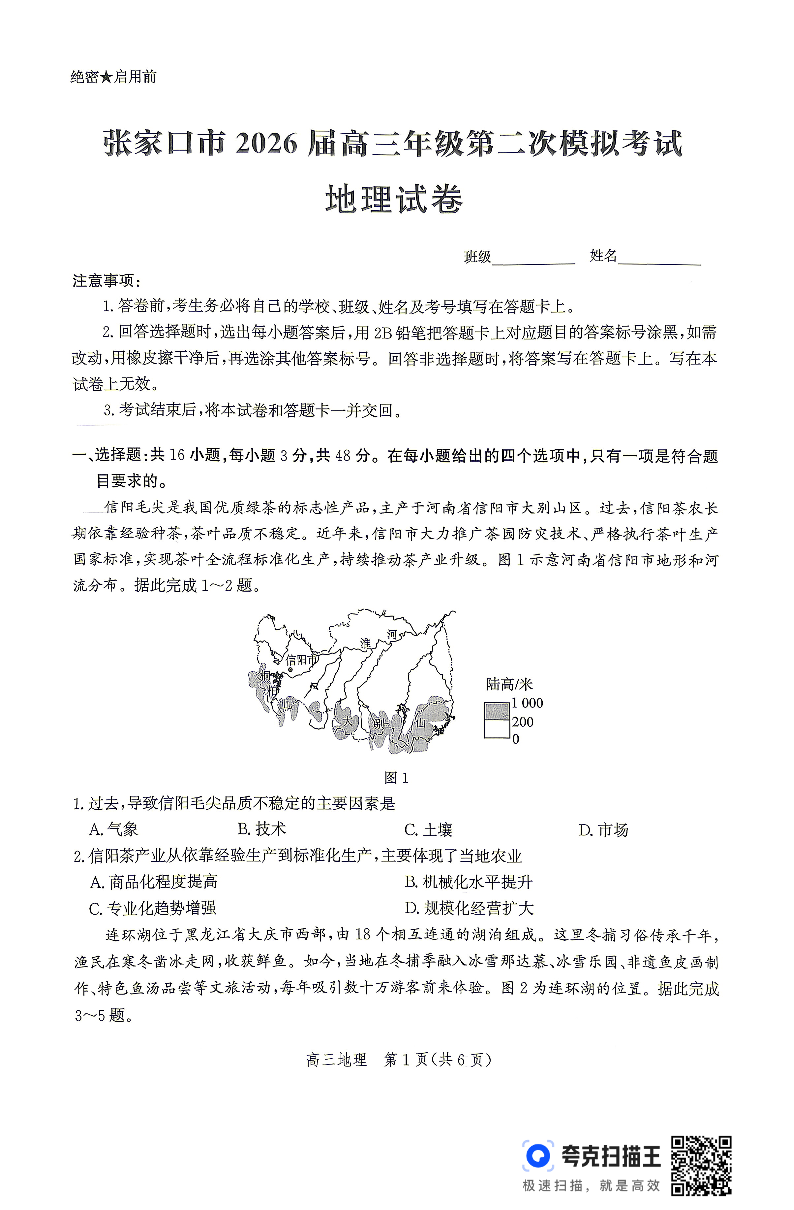 张家口市2026届高三第二次模拟考试 地理.pdf