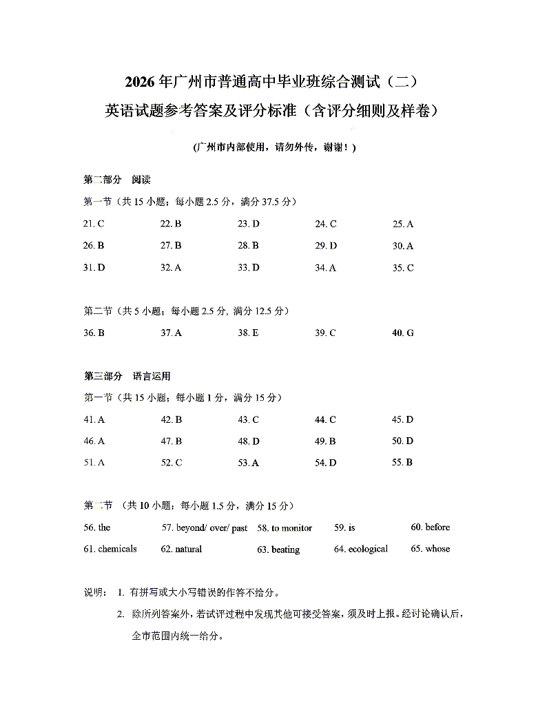 2026年广州市普通高中毕业班综合测试(二)英语答案.pdf