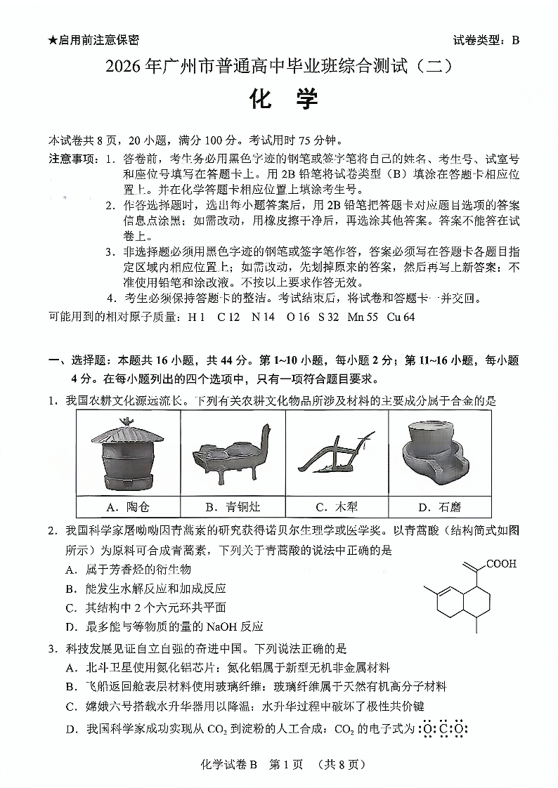 2026年广州市普通高中毕业班综合测试(二)化学.pdf