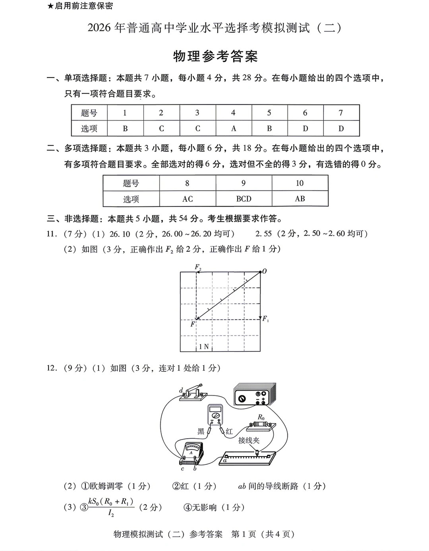 2026年普通高中学业水平选择考模拟测试(二)物理答案.pdf