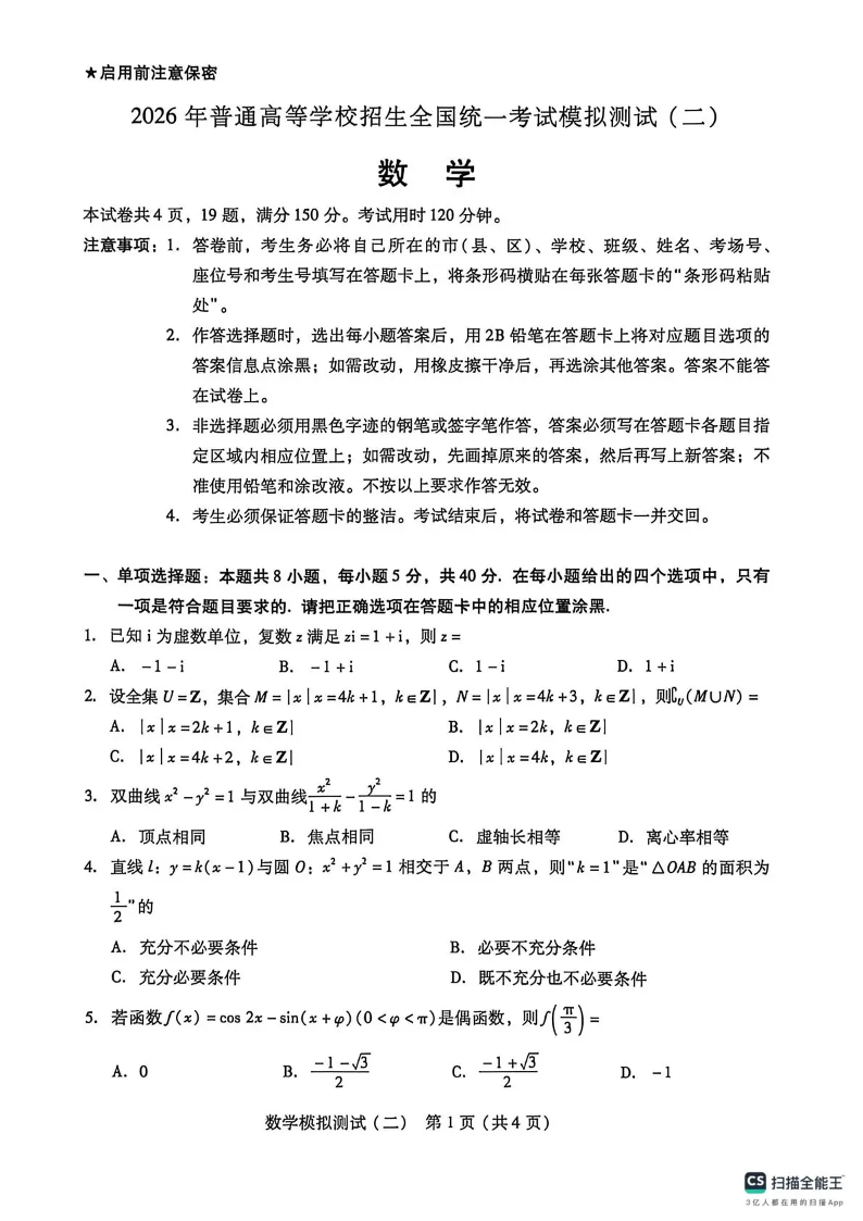 2026年普通高中学业水平选择考模拟测试(二)数学.pdf