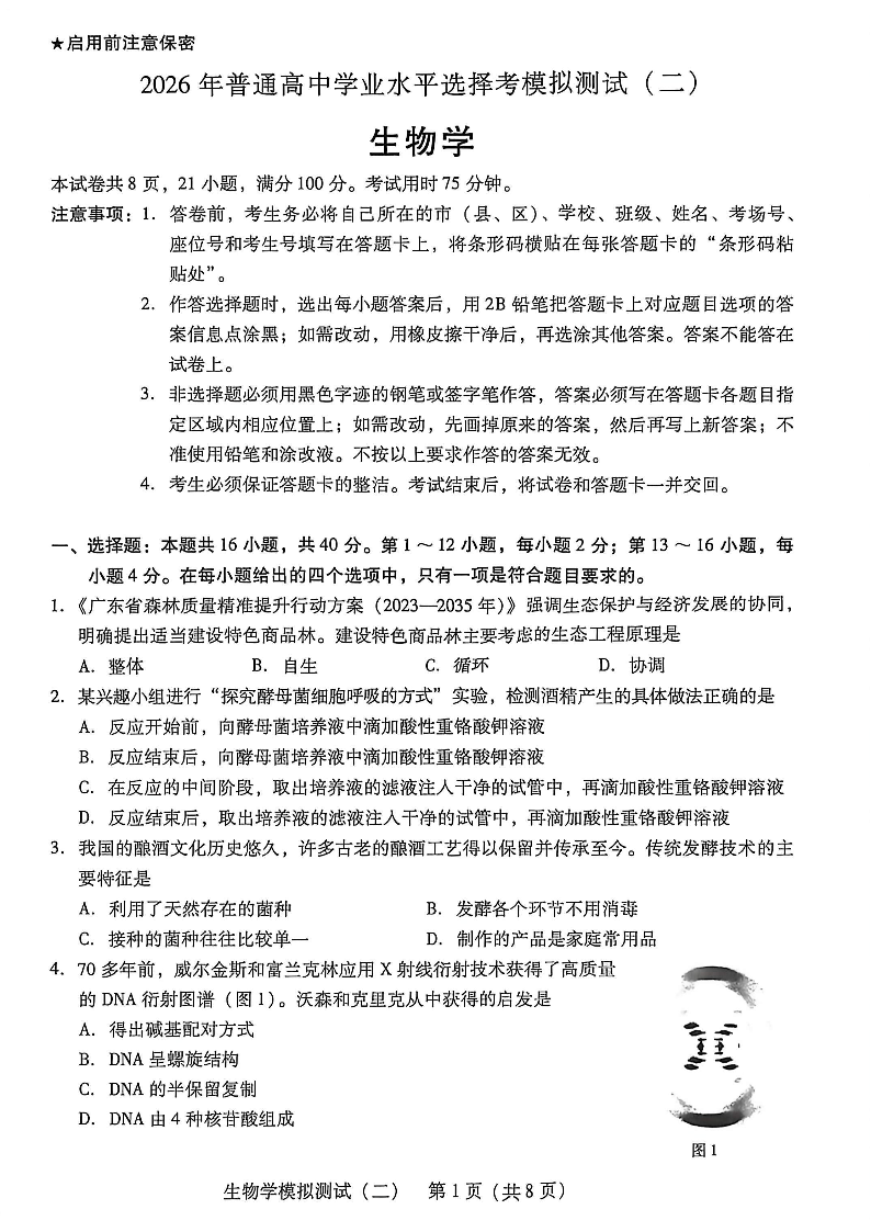 2026年普通高中学业水平选择考模拟测试(二)生物.pdf
