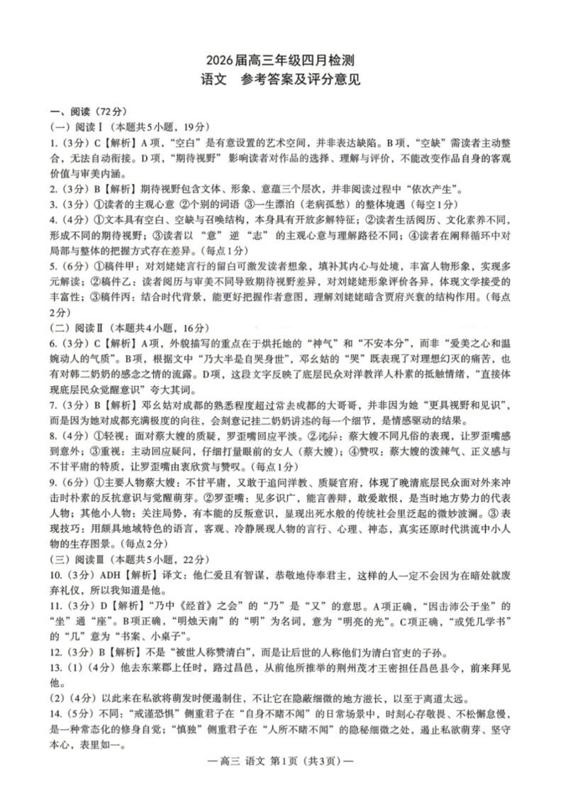 江西省南昌市2026届高三年级四月检测 语文答案.pdf