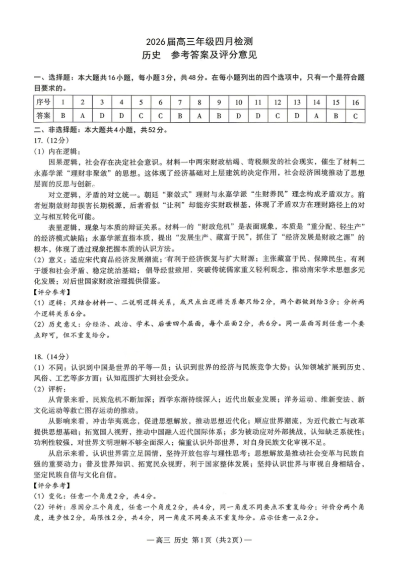 江西省南昌市2026届高三年级四月检测 历史答案.pdf