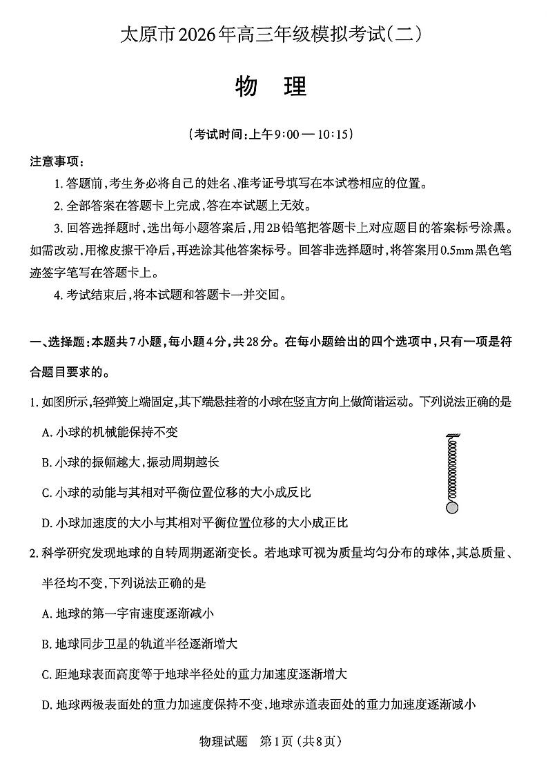 太原市2026年高三年级模拟考试(二) 物理.pdf