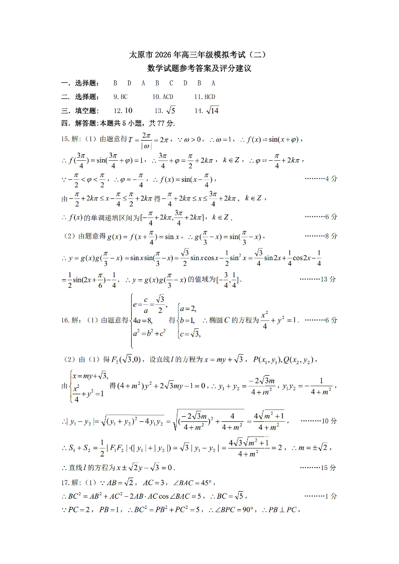 太原市2026年高三年级模拟考试(二) 数学答案.pdf