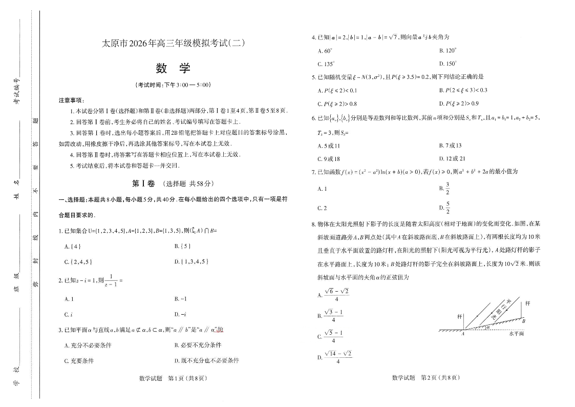 太原市2026年高三年级模拟考试(二) 数学.pdf