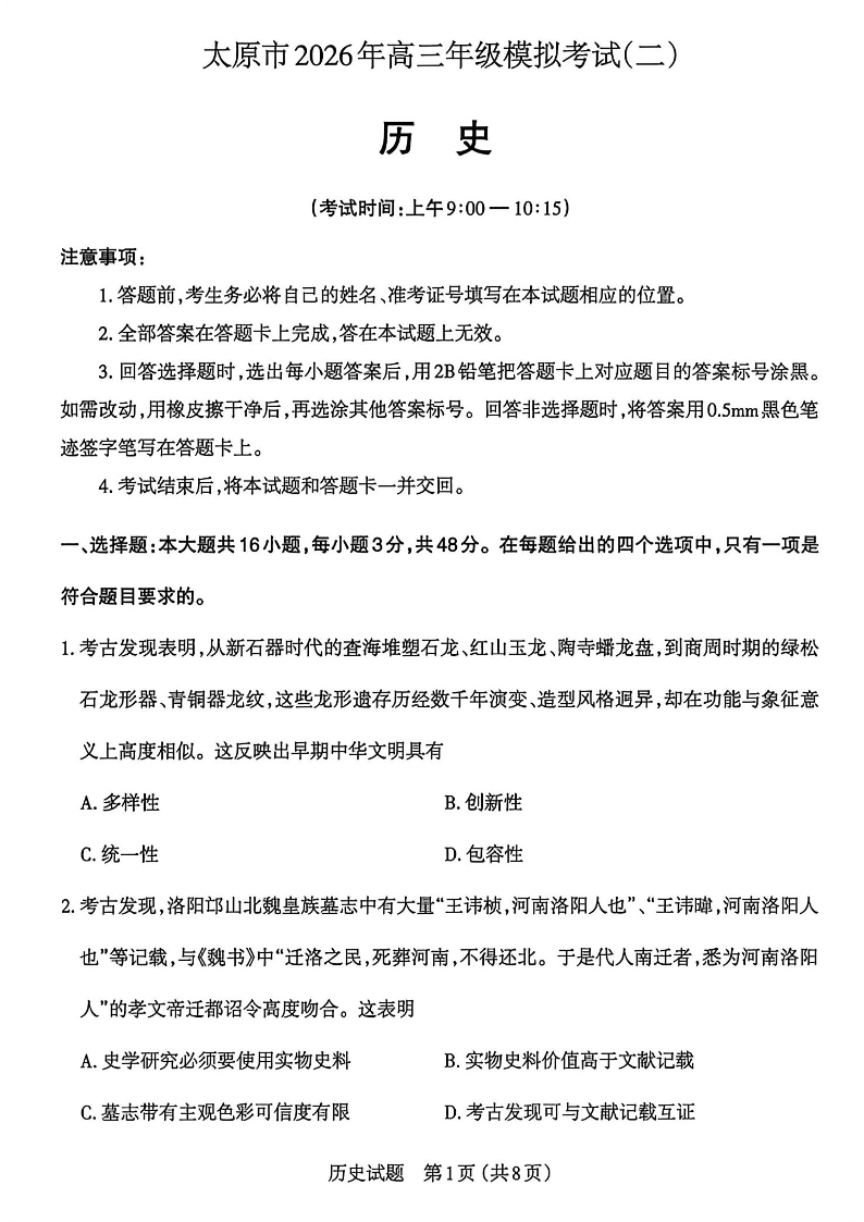 太原市2026年高三年级模拟考试(二) 历史.pdf
