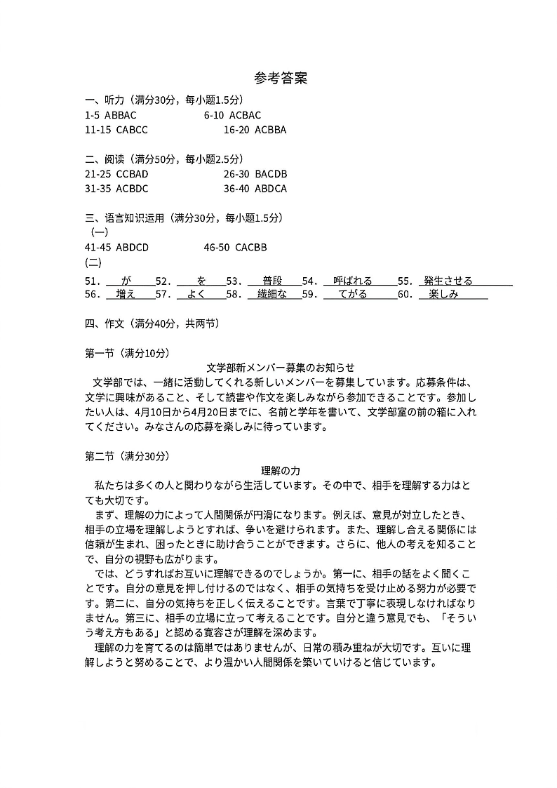 2026年广州市普通高中毕业班综合测试(二)日语答案.pdf